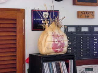 A group of us went on a snorkeling cruise one day. On the boat, behind the bar was this little guy here. Of course, if you haven't seen the movie "Castaway", with Tom Hanks, this won't mean anything to you.