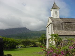 This is the St. Joseph Church, with Mount Haleakala in the background, shrouded in the clouds. This old church has been there since 1862, and has one of the most surreal and spectacular surroundings. With the ocean on one side, and the volcano on the other, and way off in the distance, you can actually see numerous waterfalls streaming down the side of the mountain.