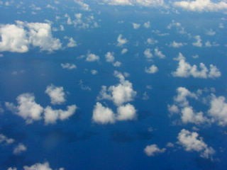 Again I must emphasize how much I love flying. And then, how much I love the scenery. This was shortly after taking off from Maui. The ocean was an incredible color of blue, with the clouds striking a beautiful contrast. I took numerous pictures of this view out the window. I'm actually going to make some large prints for my wall.