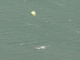 From the same vantage point as the previous posting, at the top of the Multnomah Falls, here's a shot of a kite surfer on the Columbia River.