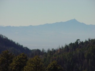 From my friends' cabin up on Mt. Lemmon, there's just a slight crevice in the hills where you can actually see the desert below. At night you can see some of the lights of eastern Tucson. But its nice in the blistering heat of the summer months to be able to escape to the cool mountains, and peek at the poor melting people below. But of course I eventually have to come back down out of the mountains and join them again myself.