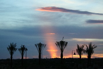 At first I was annoyed by the fact that I was having a difficult time in getting a shot of this sunset without any objects in the picture. But later I thought these palms, and the way they were all formed, made for an interesting comparison to the spray of light from the sunset.