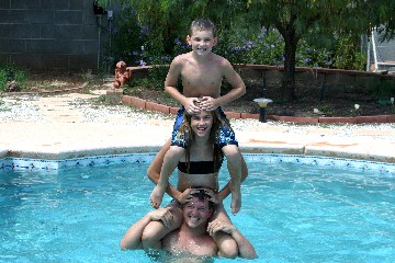 This is my cousin, Steve, and his kids, Steven and Ashley, enjoying a nice warm day in the pool.