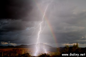 So, I decided to take a few of my own images and see what I could come up with. The background is that of a real rainbow picture somewhere north of Phoenix, and the lightning strike was from one of my previous lightning shots during the monsoon season. (click here). So, with a few adjustments here and there I merged the two together in the same picture and came up with this shot. I thought it was cool enough to share. So feel free to download it and send it out to all your friends and maybe my picture can get spread around the internet and people will actually think that it's real as well. ha ha, enjoy.